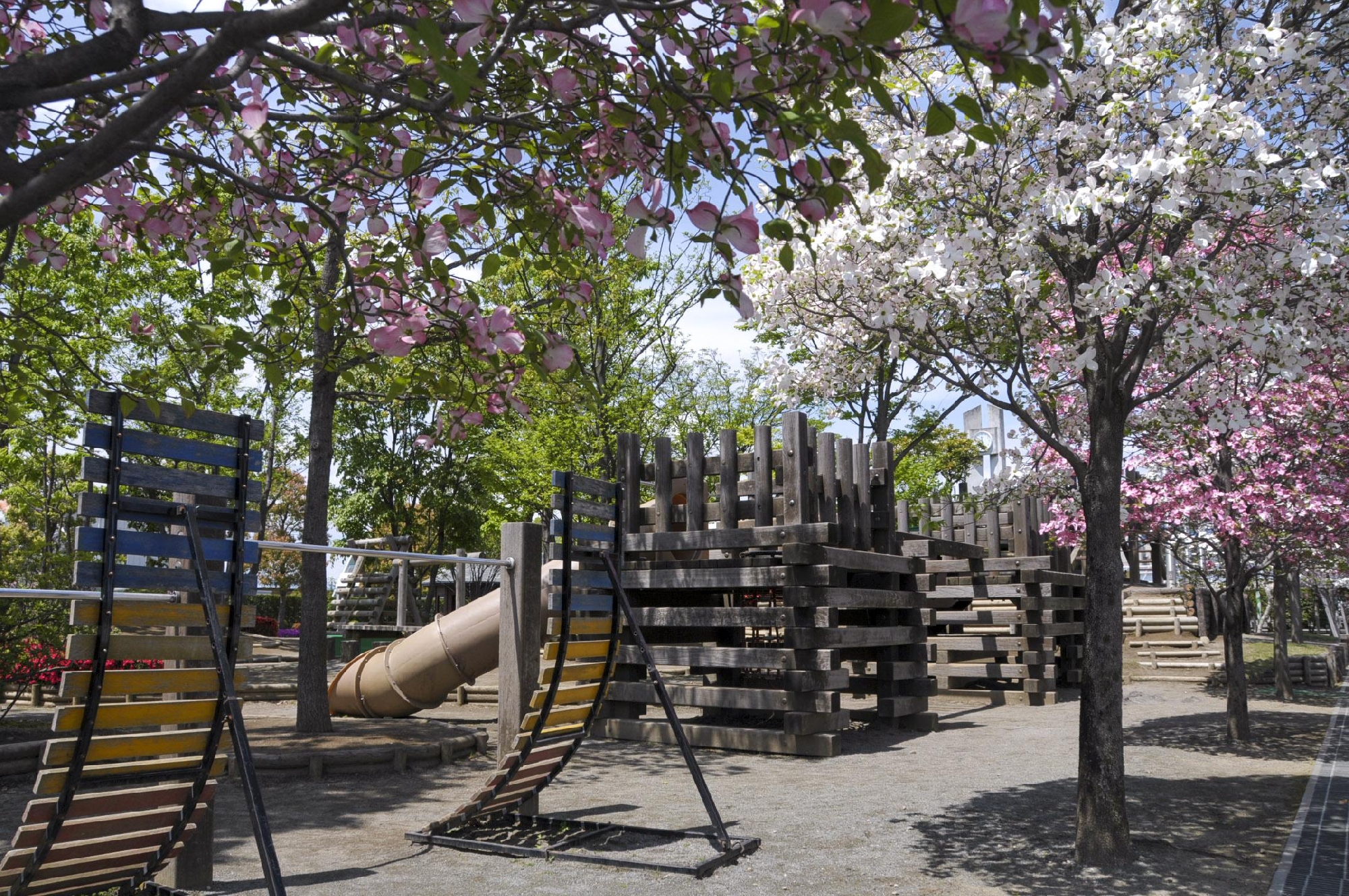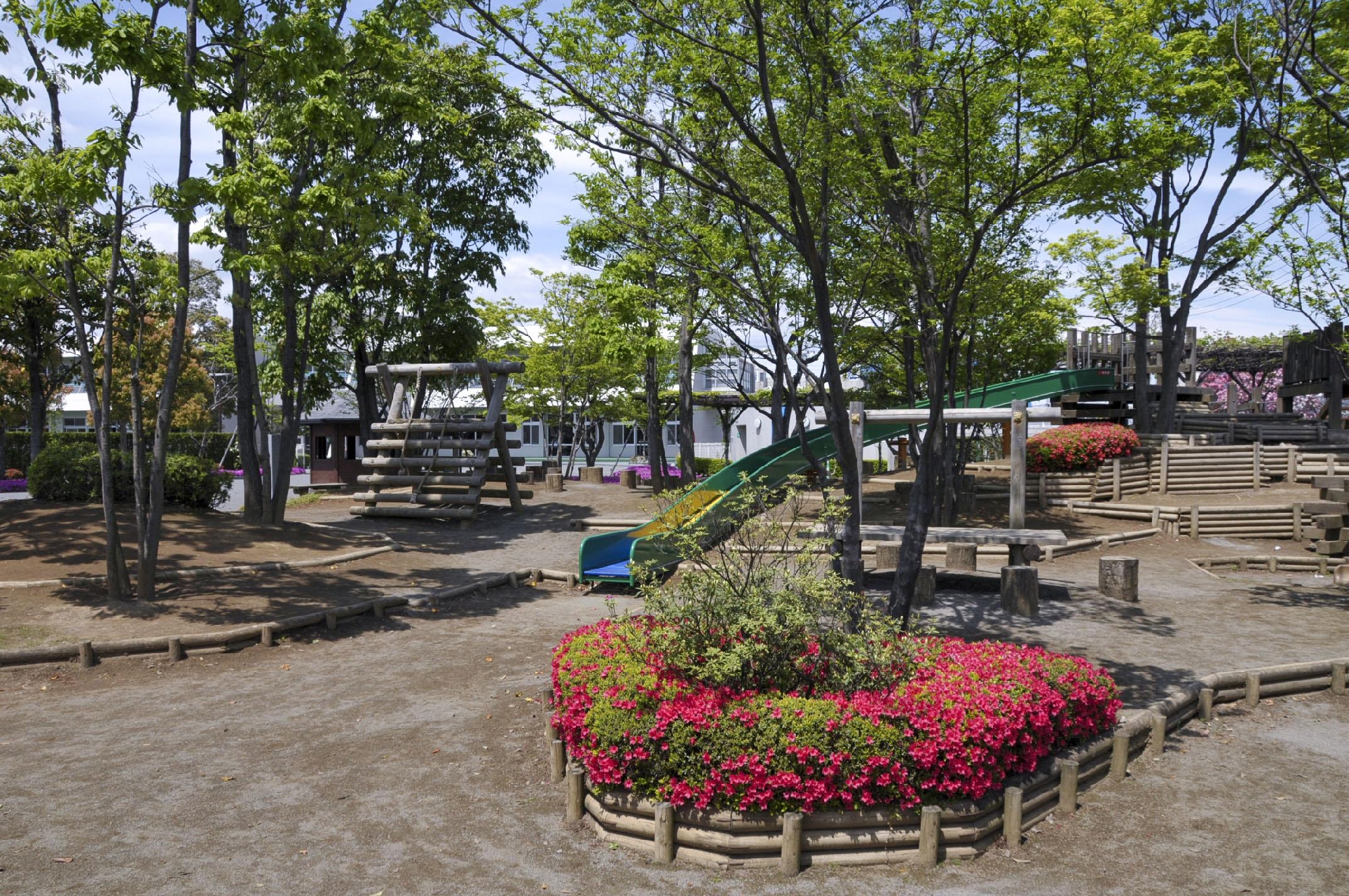 みどり幼稚園は広いお庭がある幼稚園です。季節ごとに様々な自然に触れながら、木製の遊具でたくさん身体を動かし、伸び伸びと遊びながら、子ども達の好奇心や感性を培っています。